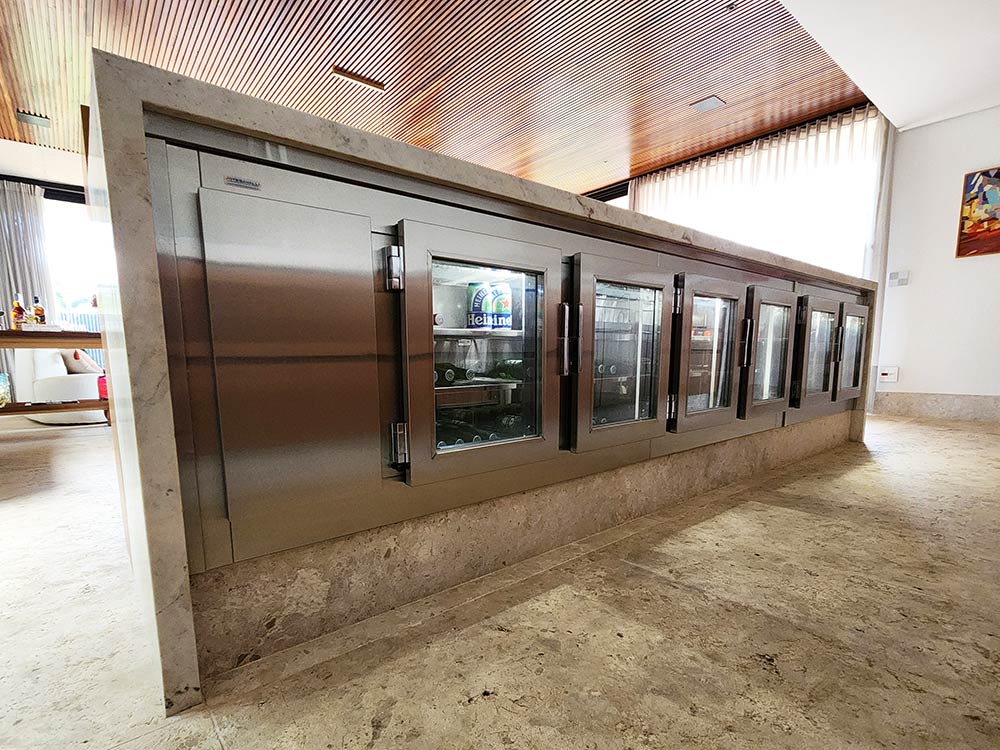 6 portas com vidros, em Inox